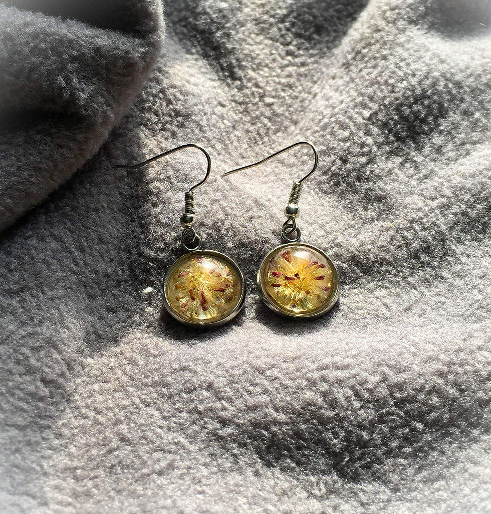 At Craft & Lather we don't just make soap and bath items, but we also create crafts and jewelry that are inspired by nature and the hills of Western Massachusetts. Our latest offering is jewelry made with resin and dried flowers and plants that have been gathered from our gardens and all around town. Each piece is unique and you will be receiving the actual piece in the photo, not just one like it. We hope that you enjoy these pieces as much as we enjoyed making them!